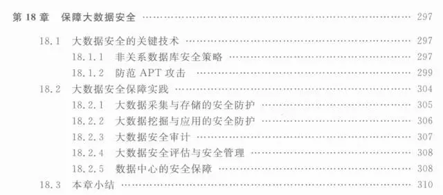 第18章保障大数据安全,介绍保障大数据安全的相关技术和相关实践。