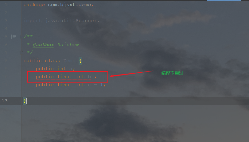 在定义成员变量时可以对其初始化,如果不对其初始化,Java使用默认的值对其初始化