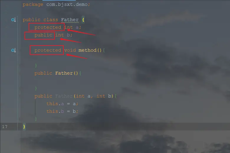 public class Father { protected String name = "父亲的属性"; public String getName() { return name; } public void method(){ System.out.println("父类方法,对象类型:" + this.getClass()); } }Son.java