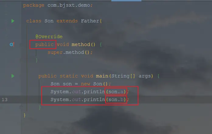 父类方法,对象类型:包名.Son