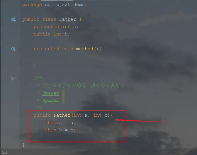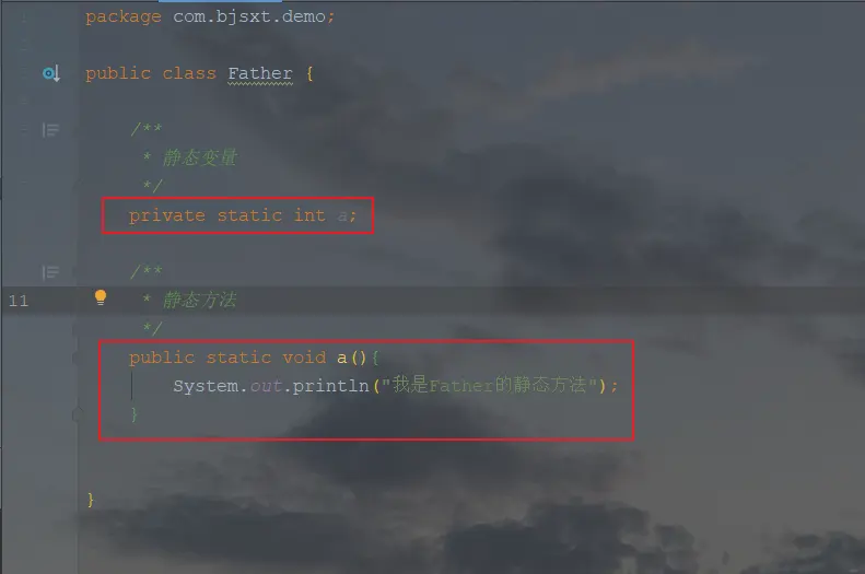 public class Son extends Father{ public static void main(String[] args) { //向上转型 Father father = new Son(); father.method(); } }结果如下: