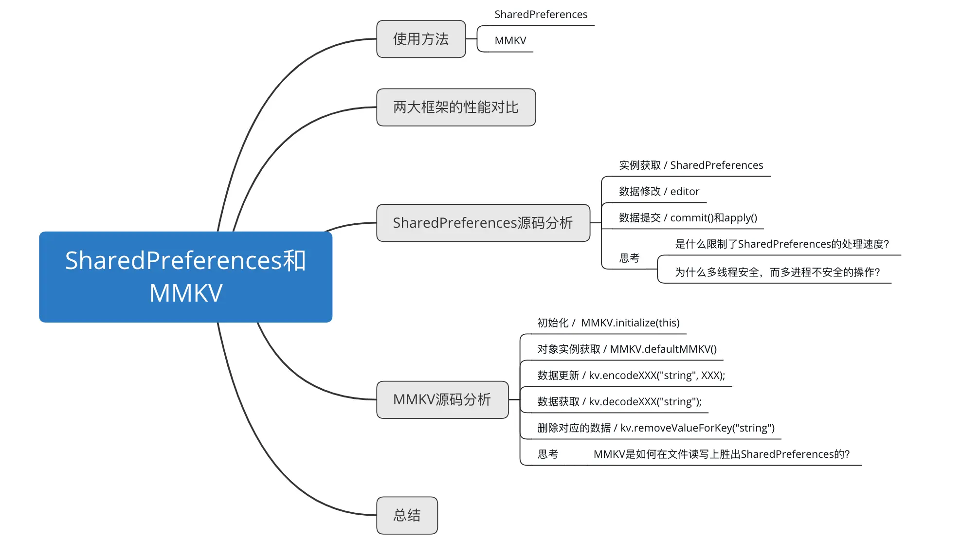 相较于之前的那些源码,这里的就显得非常轻松了,结合上述的源码分析,可以假设SharedPreferences氛围三个要点。
