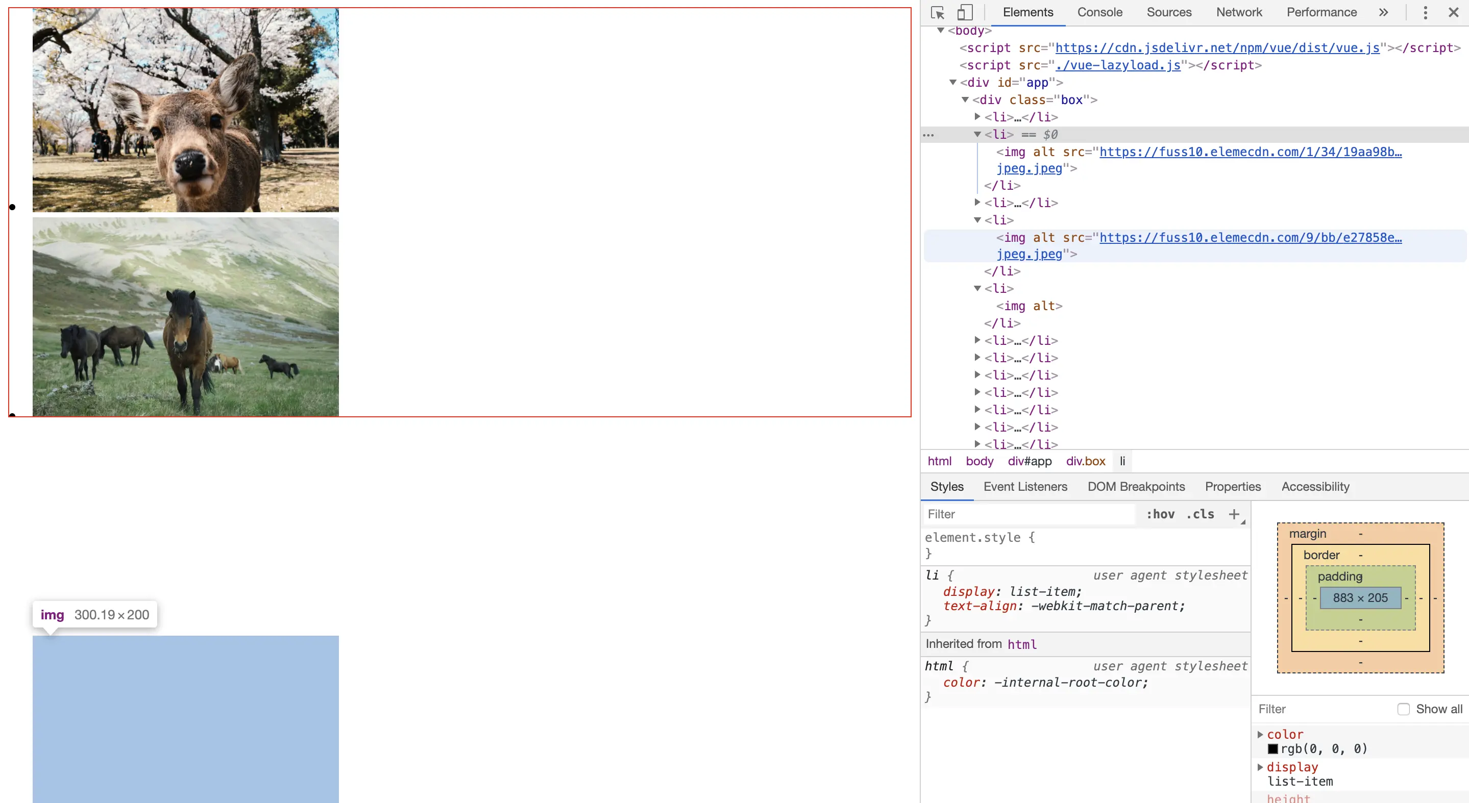 从图片中可以看出前四张都已经渲染完成了,第五张图片还没有 src 地址,证明我们的懒加载已经实现了,放上几张效果图: