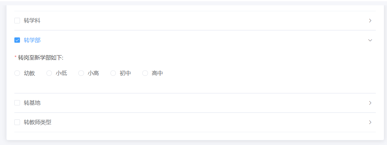 <el-form-item v-if="transfer_subject" label="转岗至新学部如下:" label-width="160" prop="transfer_subject">