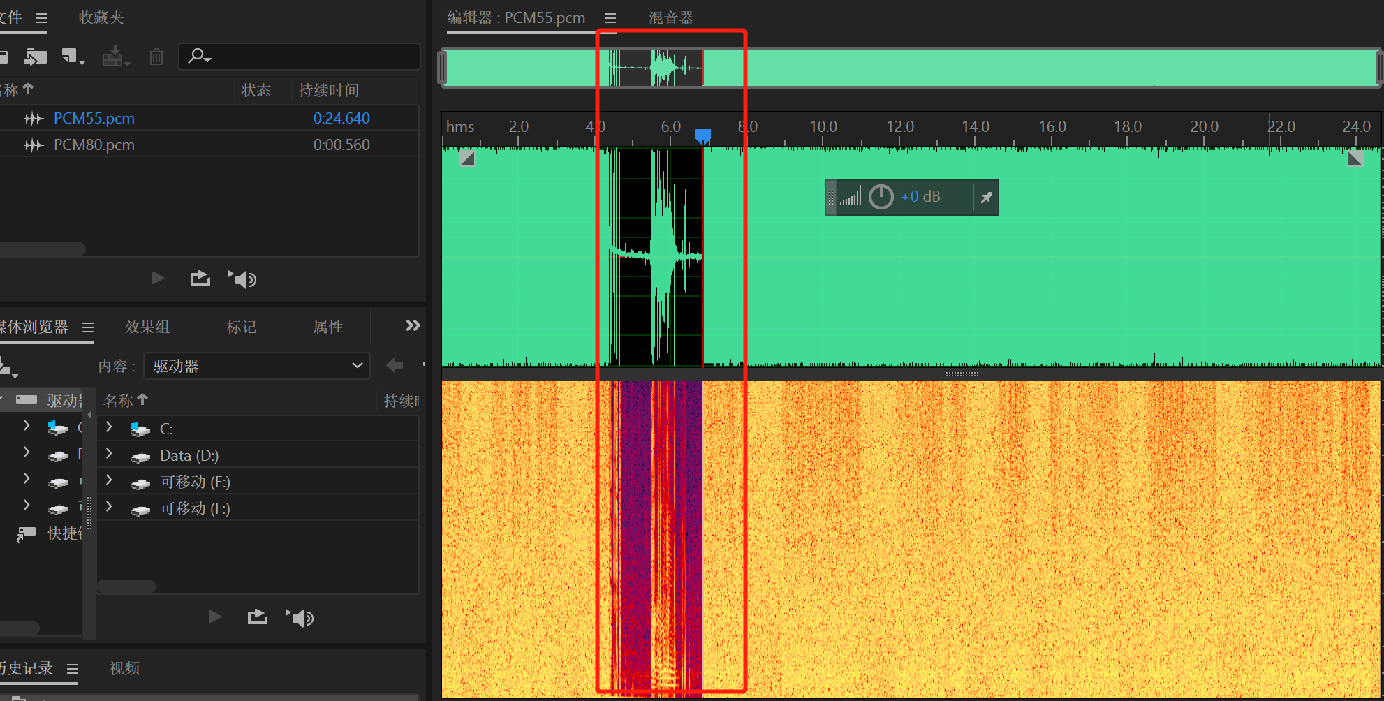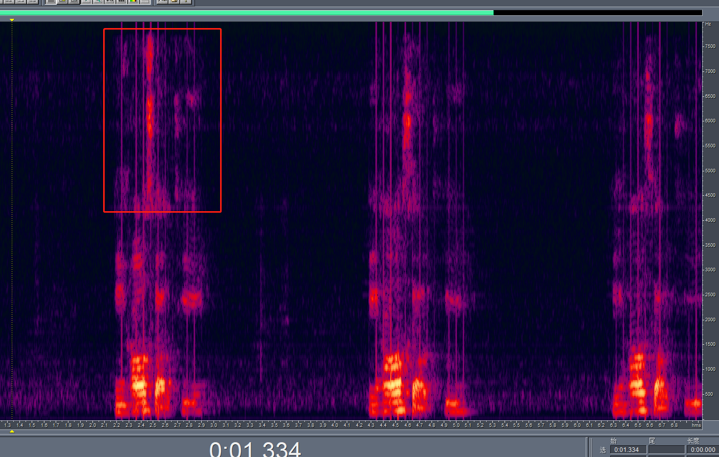 打开频谱图,可以看到清晰的人声的频谱。