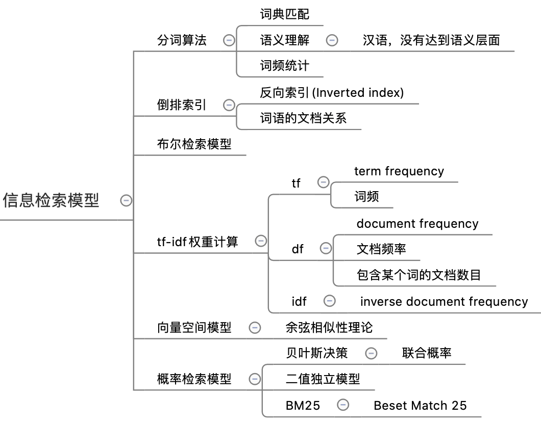 信息检索模型最重要的概念就是倒排索引,倒排索引是搜索引擎中常见的索引方法,用来存储在全文搜索下某个单词在一个文档中存储位置的映射。通过倒排索引,我们输入一个关键词,可以非常快地获取包含这个关键词的文档列表。