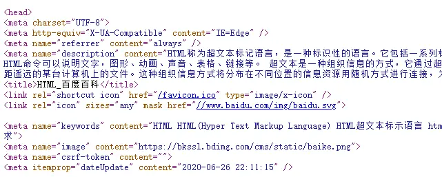 网页源代码有两千多行,太多了,我只截图了其中很小的一部分。反正html差不多就是这样的一个东西。