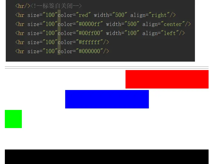 align:排列的意思,红色居右(right)、蓝色居中(center)、绿色居左(left)