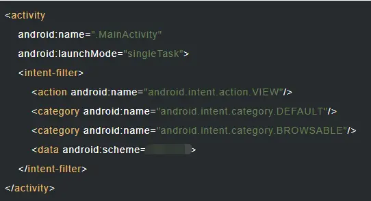 <!--配置自定义的scheme,至少需要scheme和host才能匹配-->
