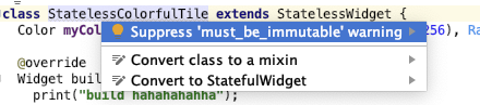将 StatelessWidget 转为 StatefulWidget 使用快捷键弹出如下菜单。
