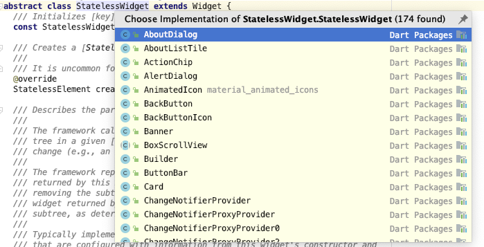 自动创建 StatelessWidget 或 StatefulWidget