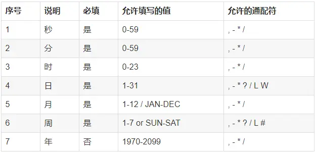 注:[年]不是必须的域,可以省略[年],则一共6个域
