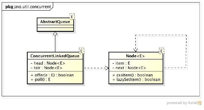 ConcurrentLinkedQueue基于链接节点的无界线程安全队列。- 采用先进先出的规则对节点进行排序。