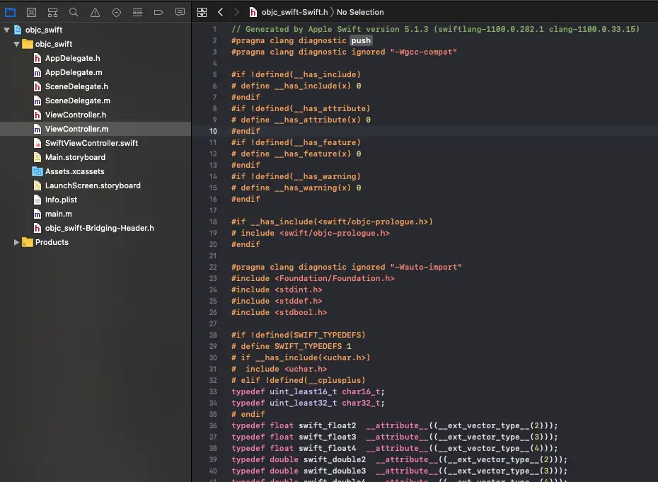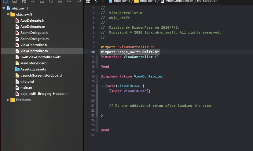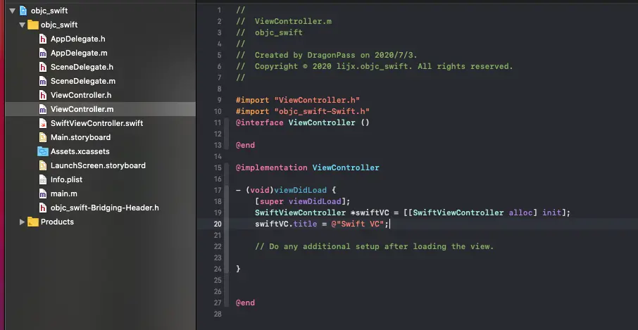 当我们在 ObjC 项目中新建 Swift 文件时或者在 Swift 项目中新建 ObjC 文件时,Xcode 都会自动帮你新建一个 Objective-C bridging header file(当然我们也可以手动创建) .