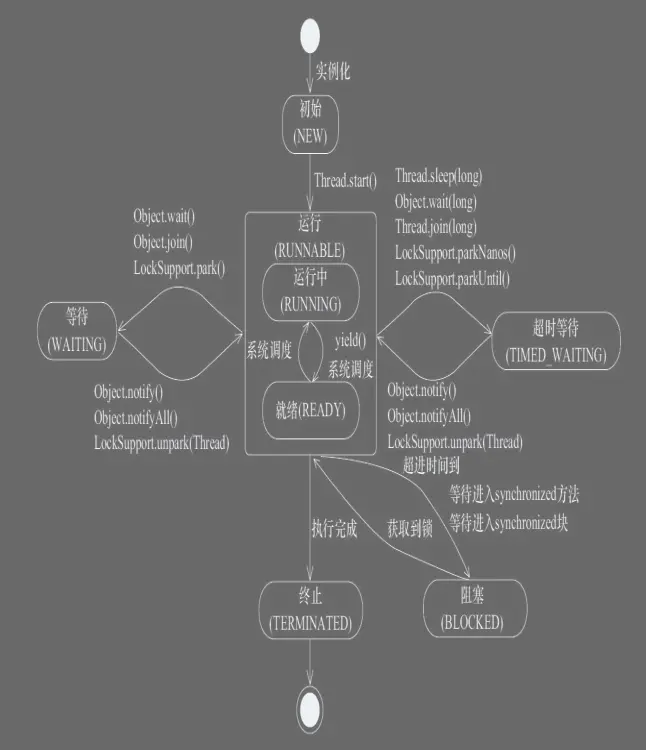 notify: 通知一个对象上等待的线程,使其从wait方法返回,而返回的前提是线程获取到了对象的锁。notifyAll:通知所有等待在该对象上的线程。wait: 调用该方法的线程进入WAITING状态,只有等待另外线程的通知或被中断才会返回,需要注意,调用wait方法后,会释放对象的锁。wait(long): 超时等待一段时间,这里的参数时间是毫秒,也就是等待长达n毫秒,如果没有通知就超时返回。wait(long,int): 对于超时时间更细粒度的控制,可以达到纳秒。