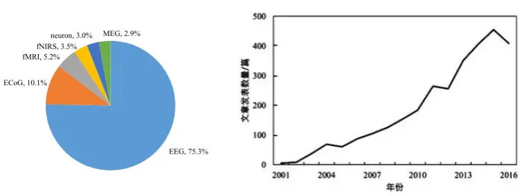 图6. 脑电在脑机接口相关研究中的应用占比