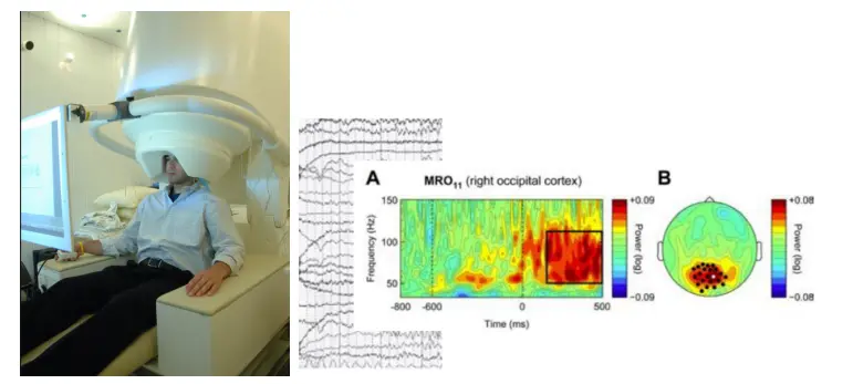 图7.脑磁图设备和脑磁信号分析