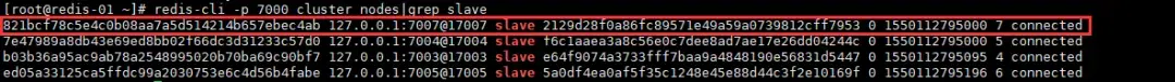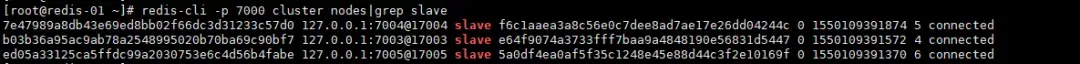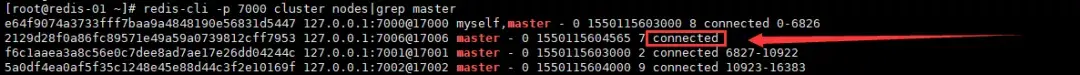 redis-cli -p 7000 cluster nodes|grep master查看从节点状态: