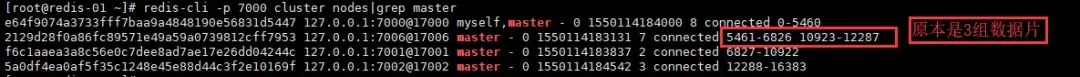 redis-cli -p 7000 cluster nodes|grep master继续移动数据片: