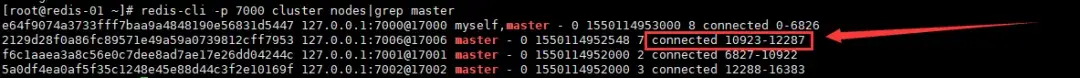 redis-cli -p 7000 cluster nodes|grep master最后一次移动数据片: