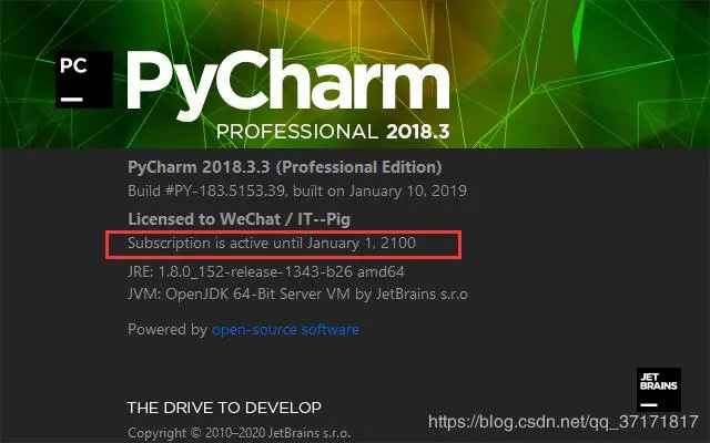 本文中pycharm版本为PyCharm Professional-2018.3.3,JetbrainsCrack版本为4.2。需要注意,不同版本的pycharm对应的JetbrainsCrack版本也就不同,在本例中,亲测此版本对应无问题。