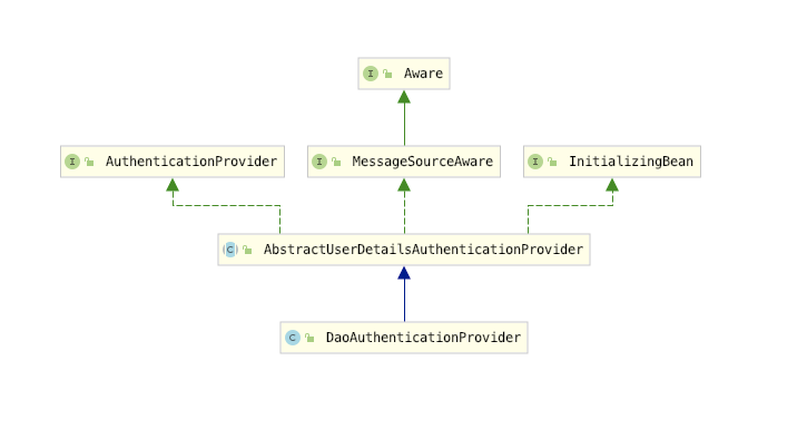 - DaoAuthenticationProvider继承了AbstractUserDetailsAuthenticationProvider实现了了AuthenticationProvider对其authenticate()进行开发,并在其基础上进行了扩展,详细请阅读源码。