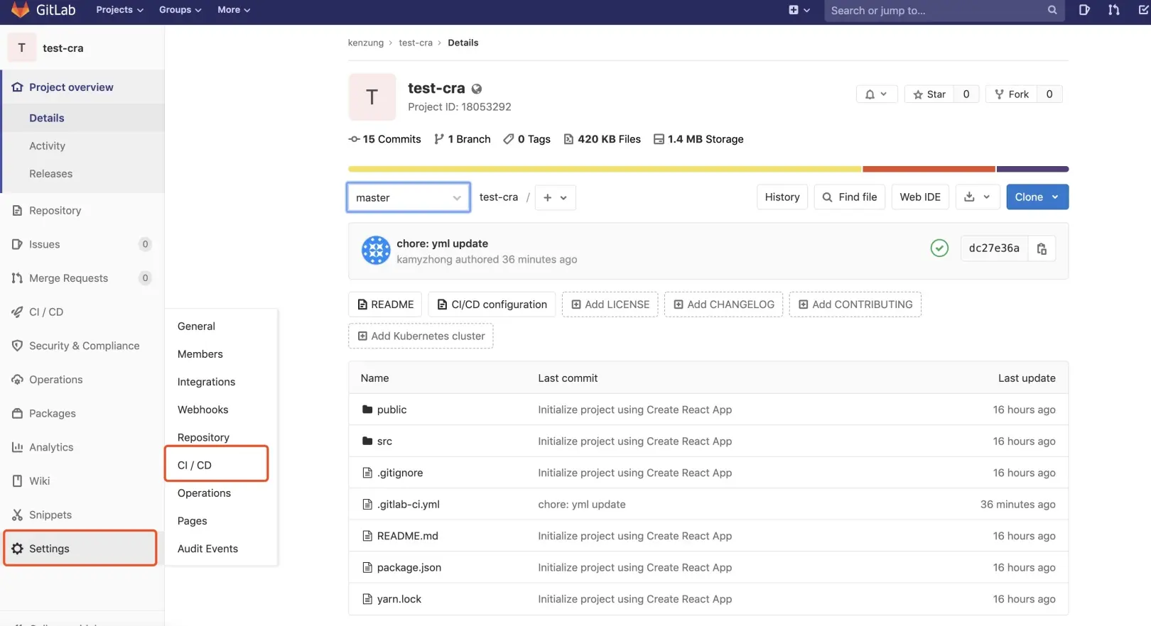 GitLab中创建 test-cra 项目