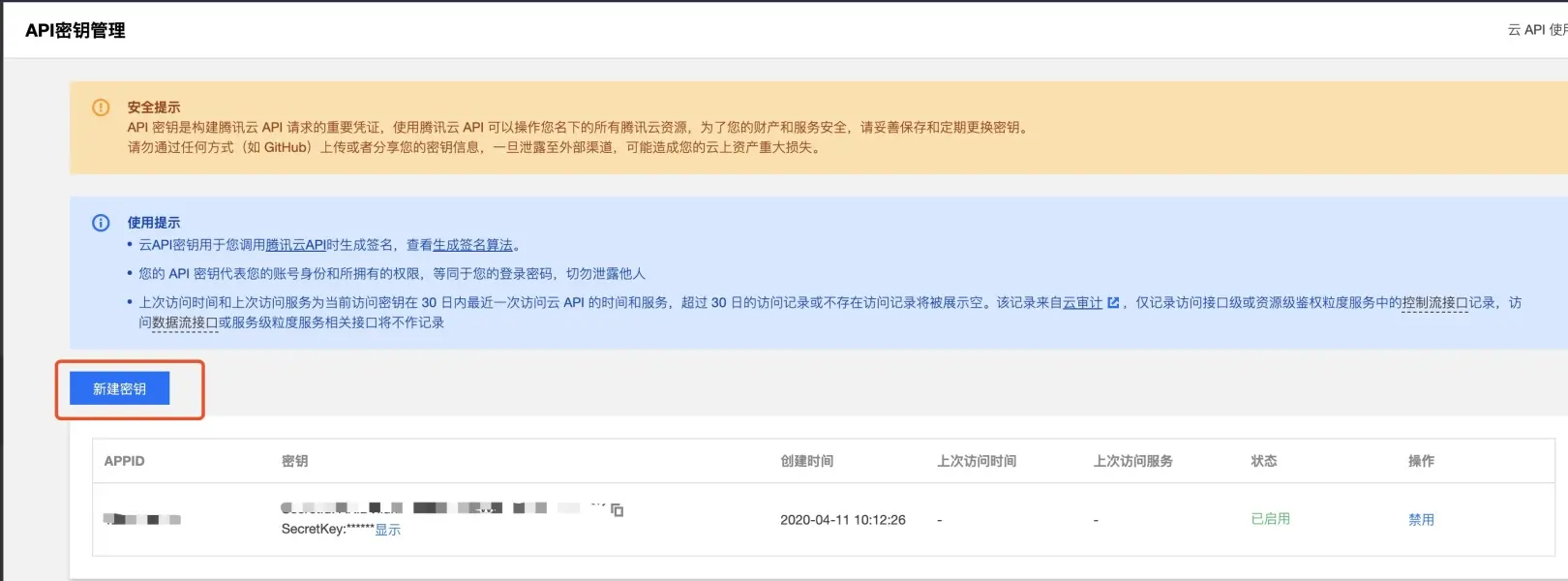 设置SecretId和SecretKey