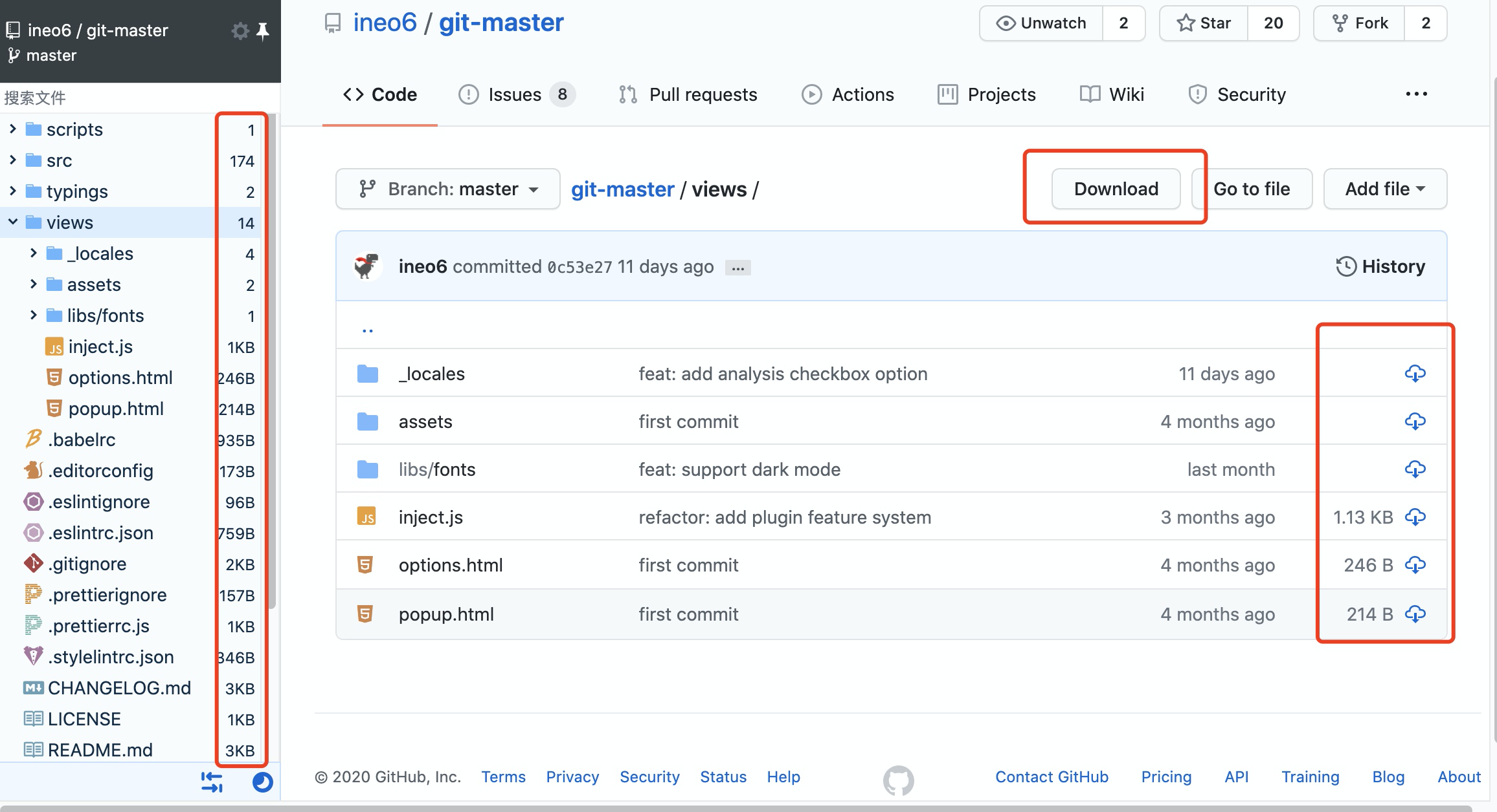 另外在原来代码页面添加了下载指定文件夹、文件的功能,再也不用为了个别内容而下载整个仓库。