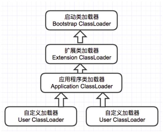 从Java 2(JDK 1.2)开始,类加载过程采取了父亲委托机制(PDM)。PDM更好的保证了Java平台的安全性,在该机制中,JVM自带的Bootstrap是根加载器,其他的加载器都有且仅有一个父类加载器。类的加载首先请求父类加载器加载,父类加载器无能为力时才由其子类加载器自行加载。JVM不会向Java程序提供对Bootstrap的引用。下面是关于几个类加载器的说明