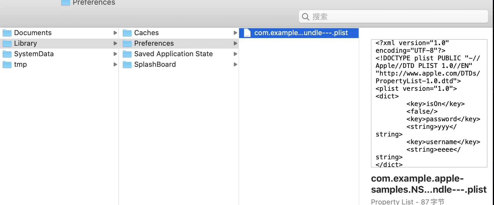 - 沙盒 Library 下的 Preferences 目录,只能采用拼接的方式,此处使用的 Library+Preferences 的方式