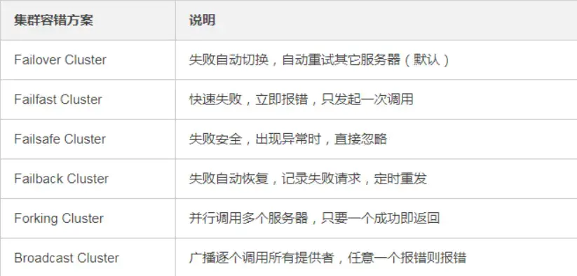 16、Dubbo有哪几种集群容错方案,默认是哪种?