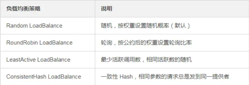 17、Dubbo有哪几种负载均衡策略,默认是哪种?