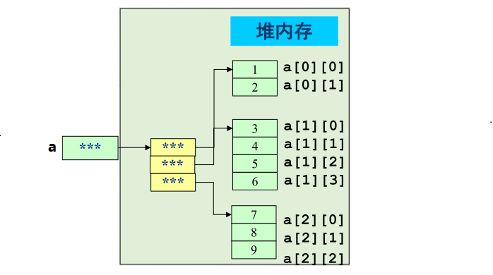 数组名[一维数组索引值] = new 数据类型[二维];