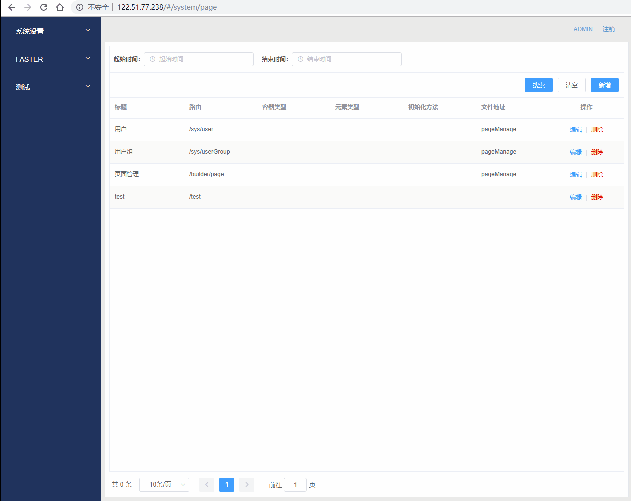 这边做了一个资源的动态加载。路由动态注册。所有说在上面保存完页面后,需要在资源里面加上。添加之后,重新刷新下页面就可以通过路由跳转正常访问了。