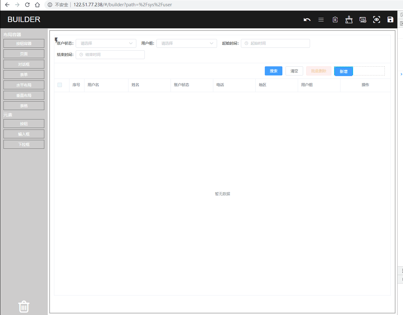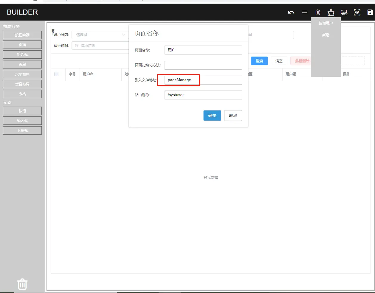 配置了一个用户列表和新增的页面