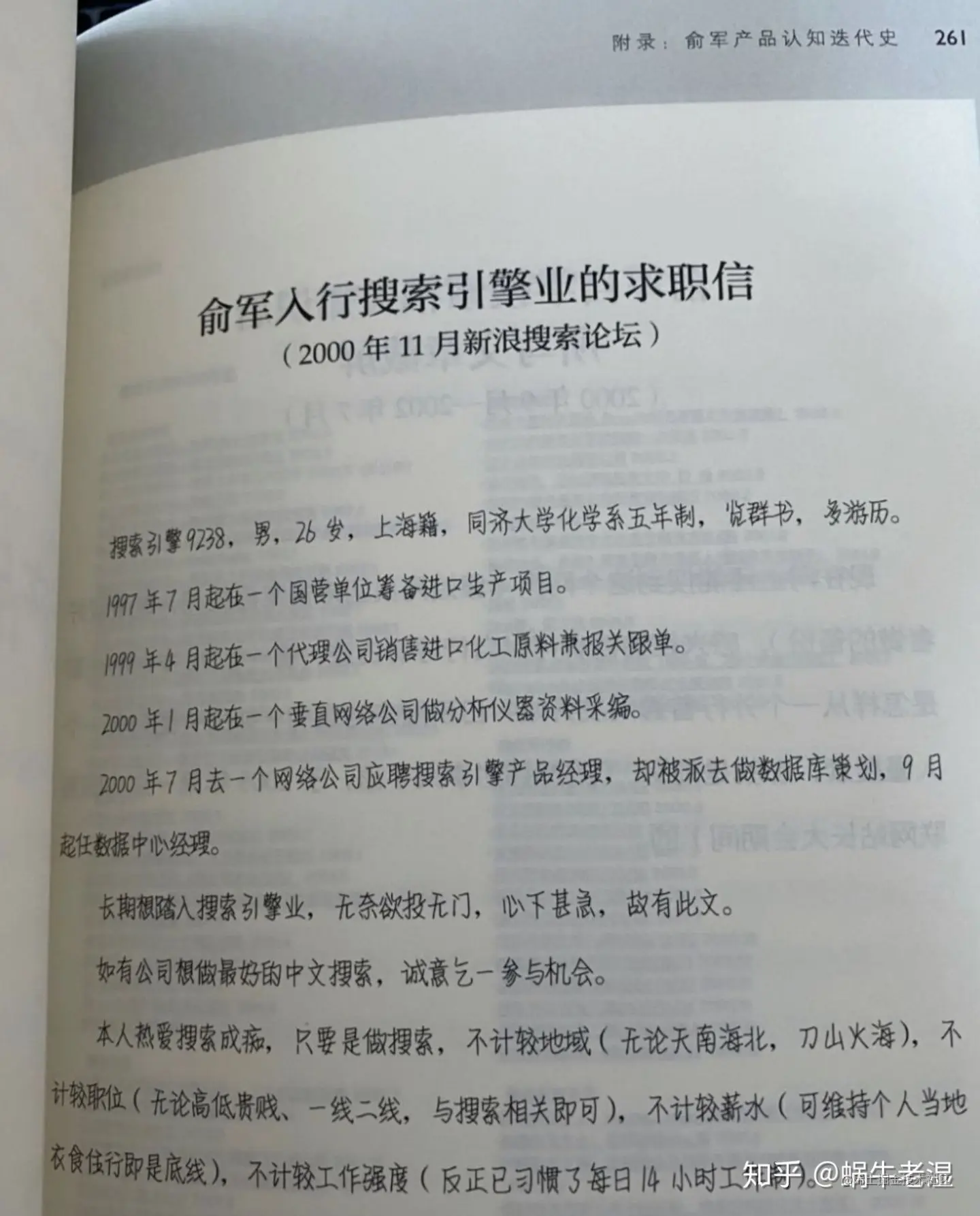 最后分享一段俞军的一封求职信,每次读到都会很感性,希望工作的第二个十年能对自己的工作有继续热爱,共勉