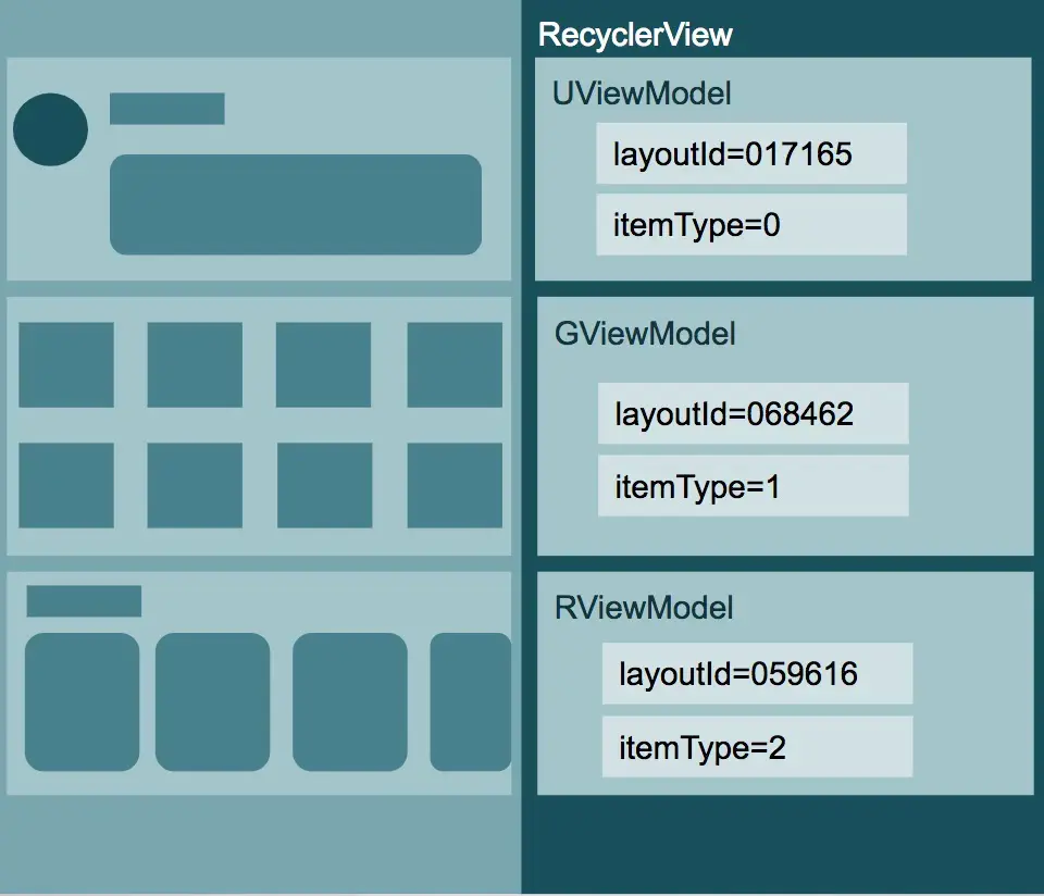 - ItemViewType自动匹配对象Layout XML,不再关心它的细节
