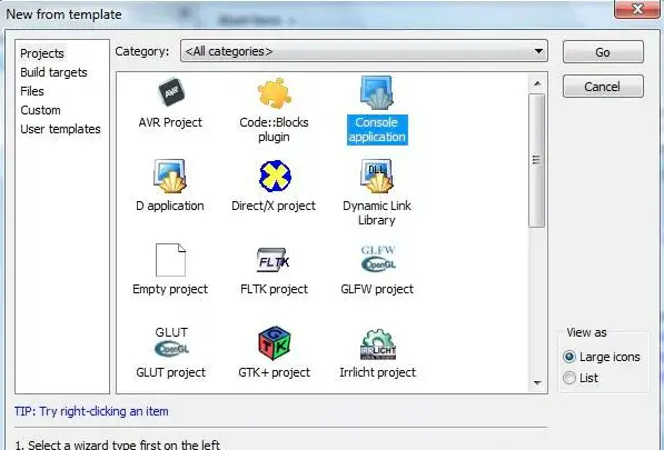 可以看到,Code::Blocks 支持非常多的程序类型,这些程序类型用到不同的库,比如 SDL(开发 2D 程序),OpenGL(开发 3D 程序),Qt 和 wxWidgets,等等。