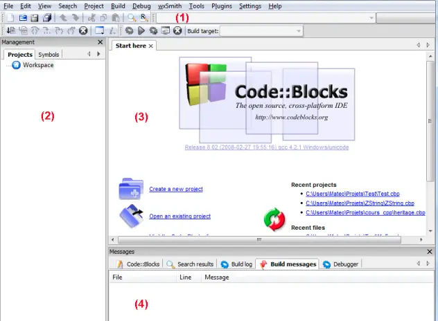 安装完运行后应该是与 Code::Blocks 类似的布局: