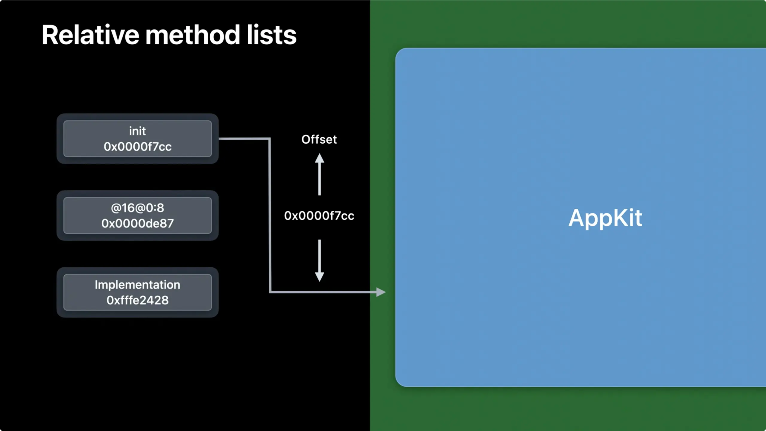 如果我们的代码中直接处理了这些底层细节,但没有处理好的话,可能会造成1个64位的指针去读取2个32位的指针值。这是没有意义的,会造成崩溃。同样,苹果推荐使用运行时API,这样底层的细节会由他们处理。