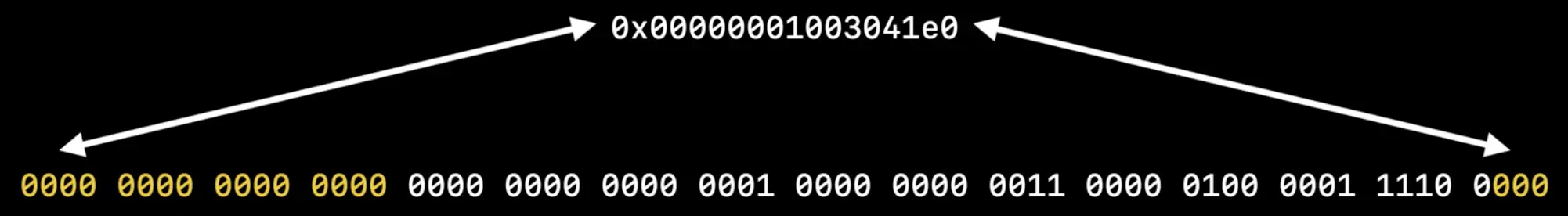 由于字节对齐的原因,低位总是0;由于我们不会真正用到所有64进行寻址,所以高位也有一部分总是0。