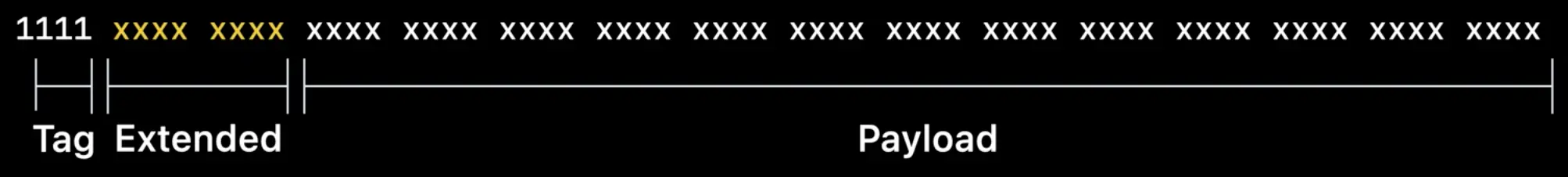 NSNumber,6表示NSDate。tag号为7时表示一种扩展的tag,会使用额外的8比特表示类型,但有意义的数据长度更短,例如