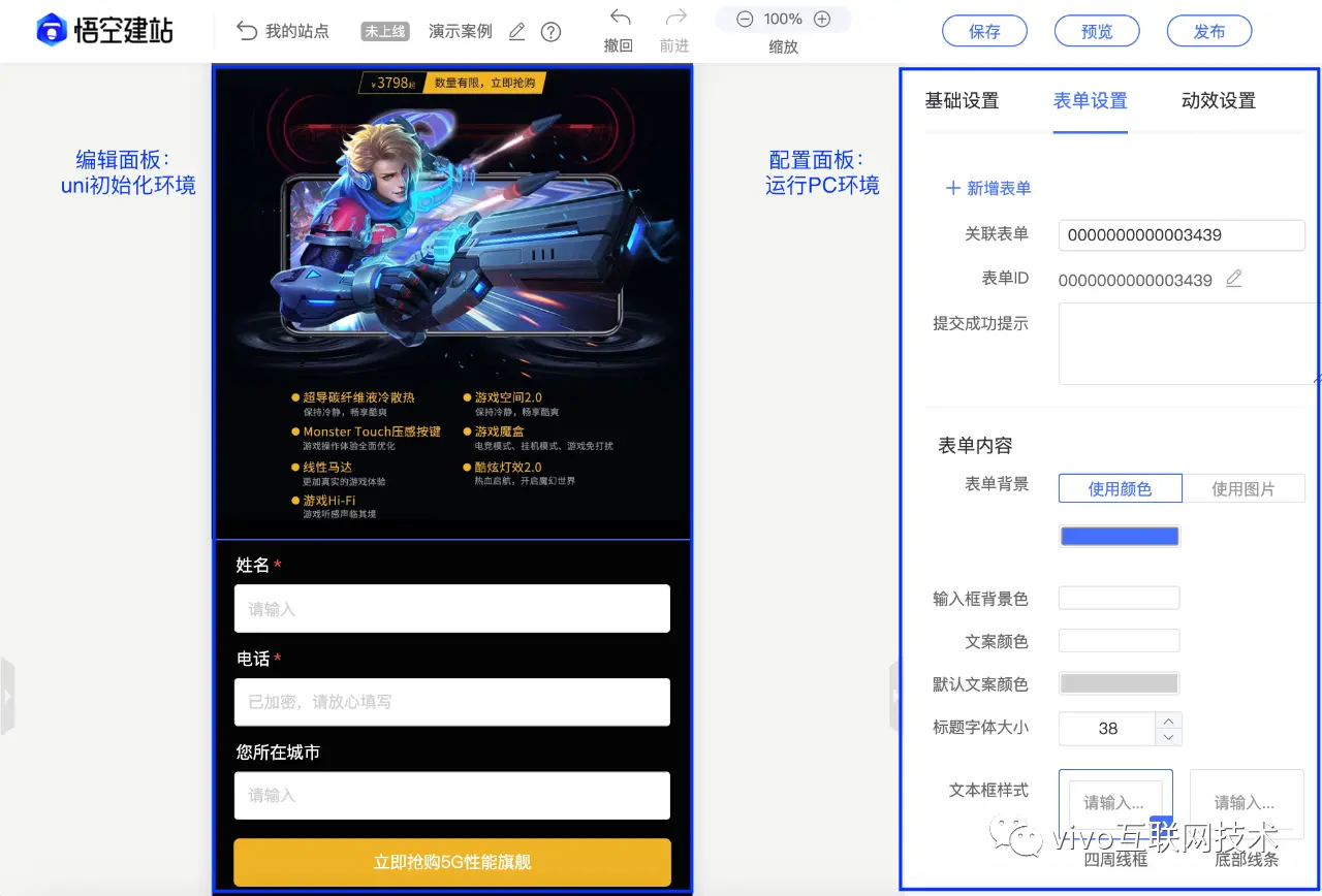 - 基于悟空编辑器可视化能力,实现多端组件实时预览,可视化配置