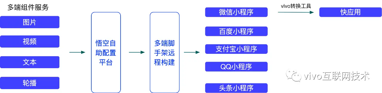 多端微组件配置化专题后,我们可以选择转换不同的客户端,并且 vivo 提供了小程序转快应用的能力,转换工具本身根据快应用标准,对逻辑层和代码做了深层的定制,保证渲染速度和使用体验。