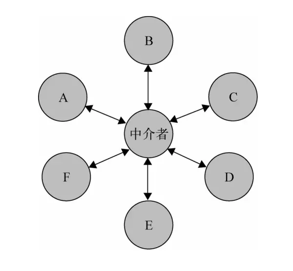中介者对象可以让各个对象之间不需要显示的相互引用,从而使其耦合松散,而且可以独立的改变它们之间的交互。所有的相关对象都通过中介者对象来通信,而不是互相引用,所以当一个对象发生改变时,只需要通知中介者对象即可