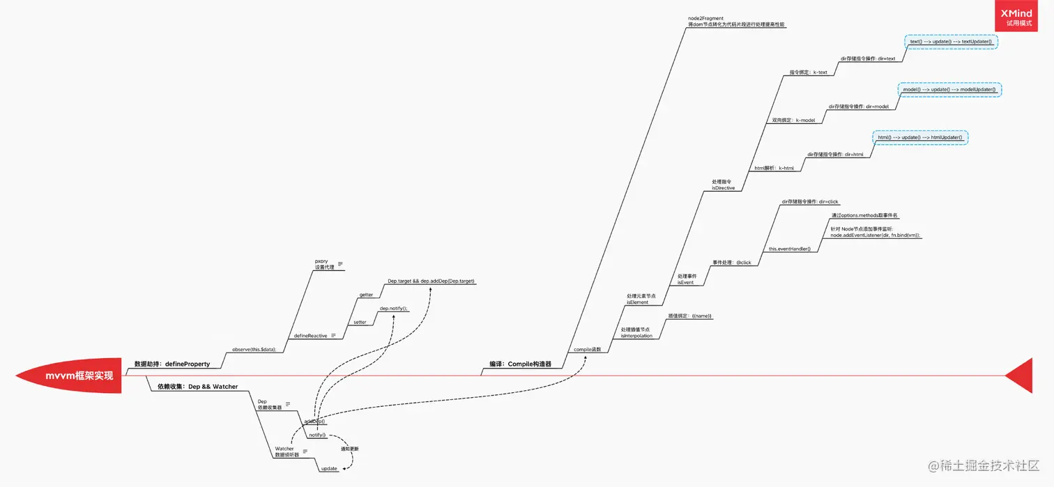 下面这张图简单介绍了 mvvm实现的各部分细节。