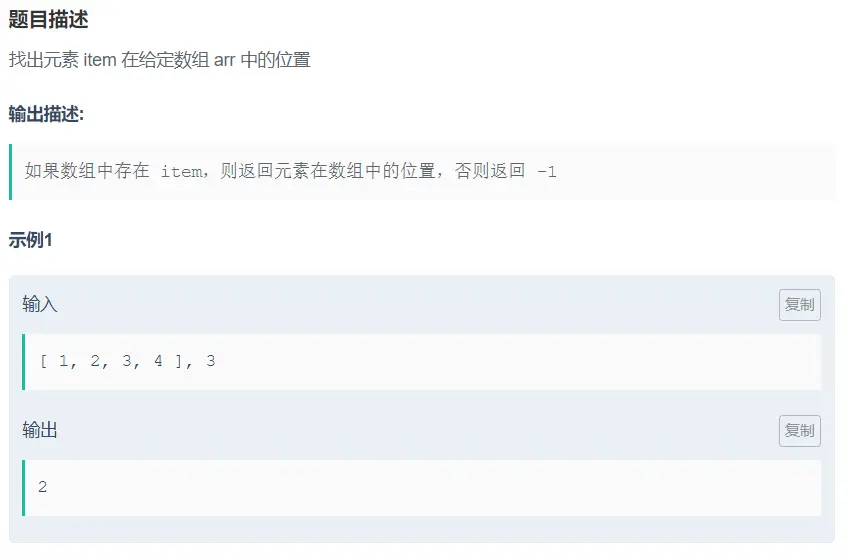 arr.indexOf(searchElement[, fromIndex = 0]) //从fromIndex开始查找searchElement元素在数组中的第一个位置