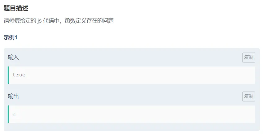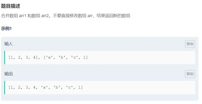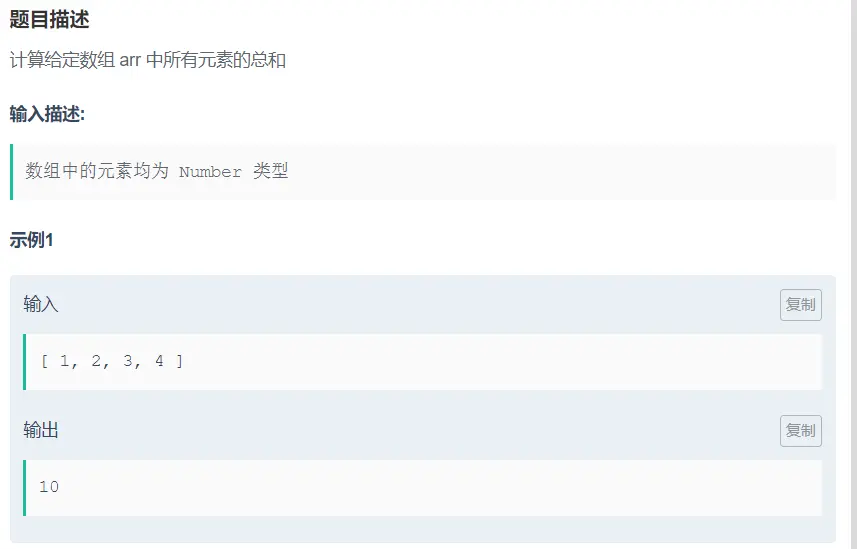 牛客网的45道JS能力评测题个人觉得是非常好的45道js基础检测题,基本就是对自己的JavaScript基础做一个比较全面的评估,包括if语句、循环体、基础操作符、setInterval、setTimeout、流程控制、常用数组方法及es6相关(解构、Map、Set、...等)。之前我已经做过一遍了,我记得以前牛客网不支持es6的写法,这两天花了点时间把所有题目又做了一遍,发现支持es6了。这次每个题目我都尽力用了不同的方法实现,建议各位看官收藏,需要的时候方便查看。当然如果你有更好更新颖的实现方法,欢迎评论区留言交流。