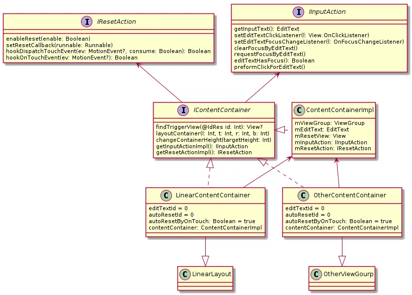 - ContentContainerImpl 为默认处理了所有 IContentContainer 所需要实现的接口,为不同特性的 ViewGroup 实现提供了便捷的代理。